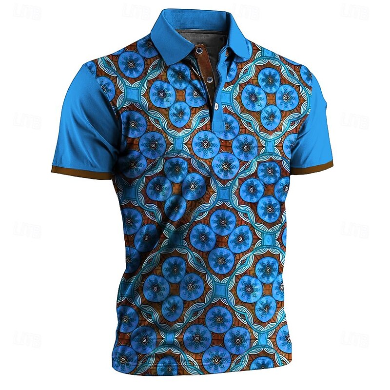 More information about Men's Tribal Polo Shirts Golf Shirt Short Sleeve Polo Shirts Collared Shirts Vintage Casual Vacation Wear Party Outfits Buttons 3D Print Summer Yellow Blue Orange