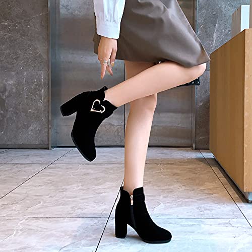 Block Heel Ankle Boots with Fashion High-Heeled for Women 6