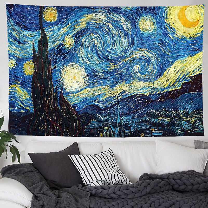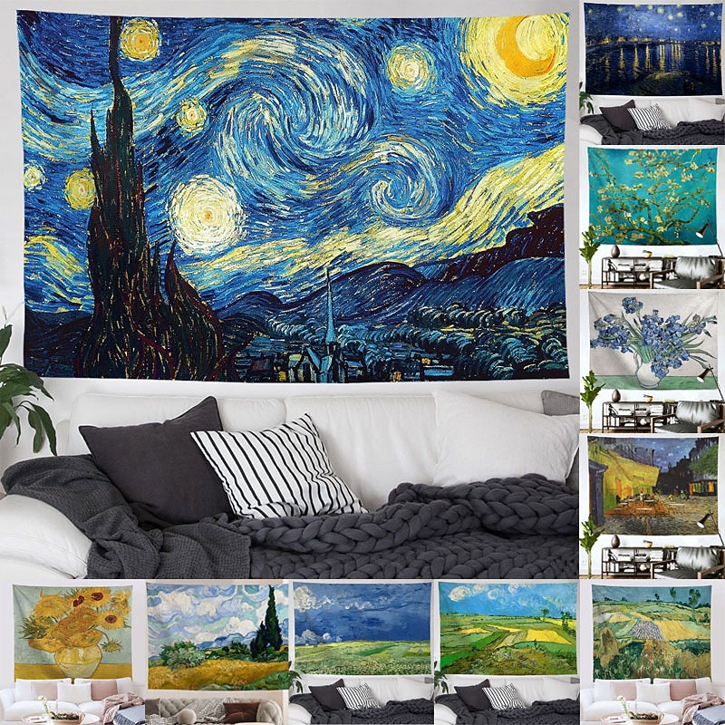 HOT ! Van Gogh Painting Large Wall Tapestry Art Decor Blanket Curtain Hanging Home Bedroom Living Room Decoration Polyester
