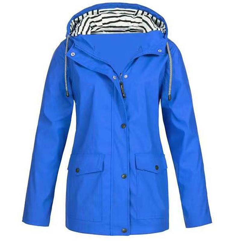 Women's Rain Jacket Hiking Raincoat Waterproof Jacket Outdoor Windproof Quick Dry Lightweight Hooded Windbreaker Parka Trench Coat Top Camping Hunting Fishing Navy Pink Blue Purple 9