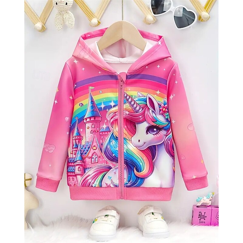 HOT ! Girls' 3D Unicorn Hoodie Coat Outerwear Long Sleeve Spring Fall Adorable Sport Kids 4-12 Years Zip Street Daily Regular Fit