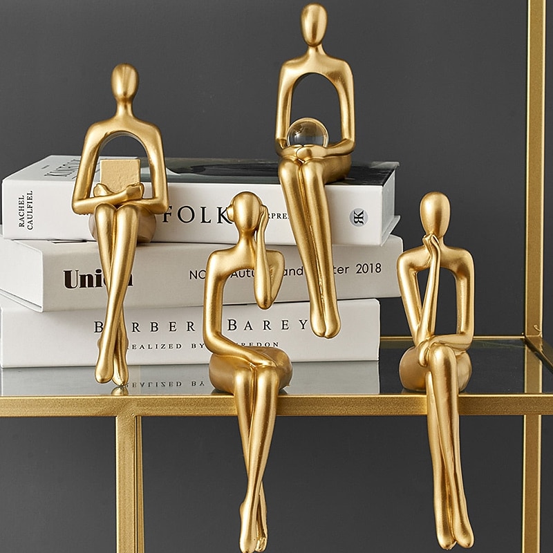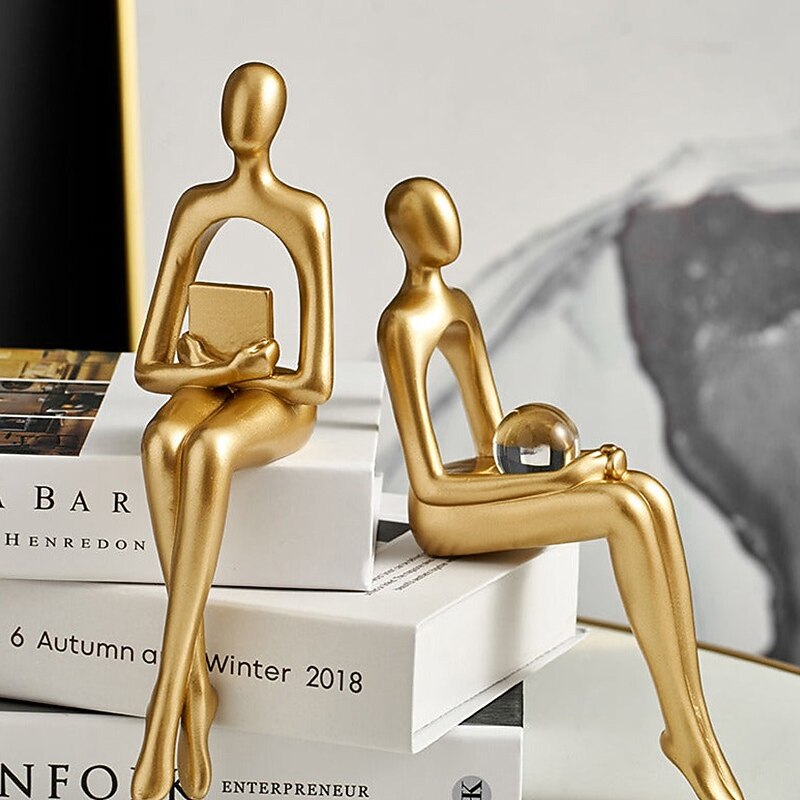 Highlights Product Selling Points: 1. Bookshelf Decoration: Add an artistic touch to your bookshelf with this abstract figure statue collection ornament. It serves as room decor, table decor, and home decor, adding elegance to any space. 2. Unique Design: The modern abstract and unique thinker design of this statue makes it a perfect addition to office decor, home decor, coffee table decor, and shelf decor. The hollow design adds an artistic taste to the bookshelf decor, showcasing individuality. 3. Exquisite Craftsmanship: Made of high-quality resin, this bookshelf decor has a smooth and finely polished surface, displaying delicate artistry. It is a perfect piece for home office decor and gold office decor. 4. Perfect Gift: Whether for friends, lovers, leaders, family, or colleagues, this gold bookshelf decoration serves as an ideal gift. Its elegant design and versatile nature make it suitable for any occasion and space. 5. Wide Application: This modern abstract statue can be used for bookshelf decor in various settings such as homes, bedrooms, offices, and schools. Its unique home decor accents modern home decor, creating a stylish ambiance.