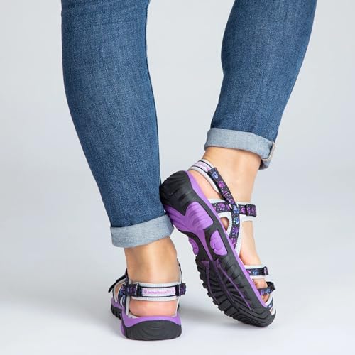 GreaterGood Trail Blazer Painted Paws Lightweight Adjustable Sport Closed Toe Sandals For Ladies Women's Walking Shoes 7