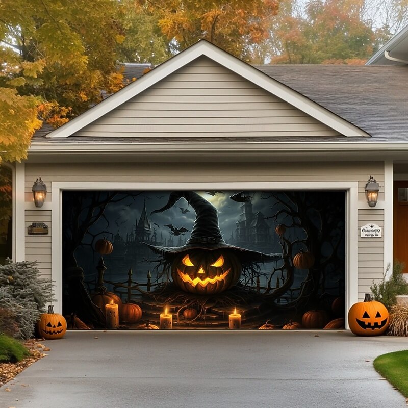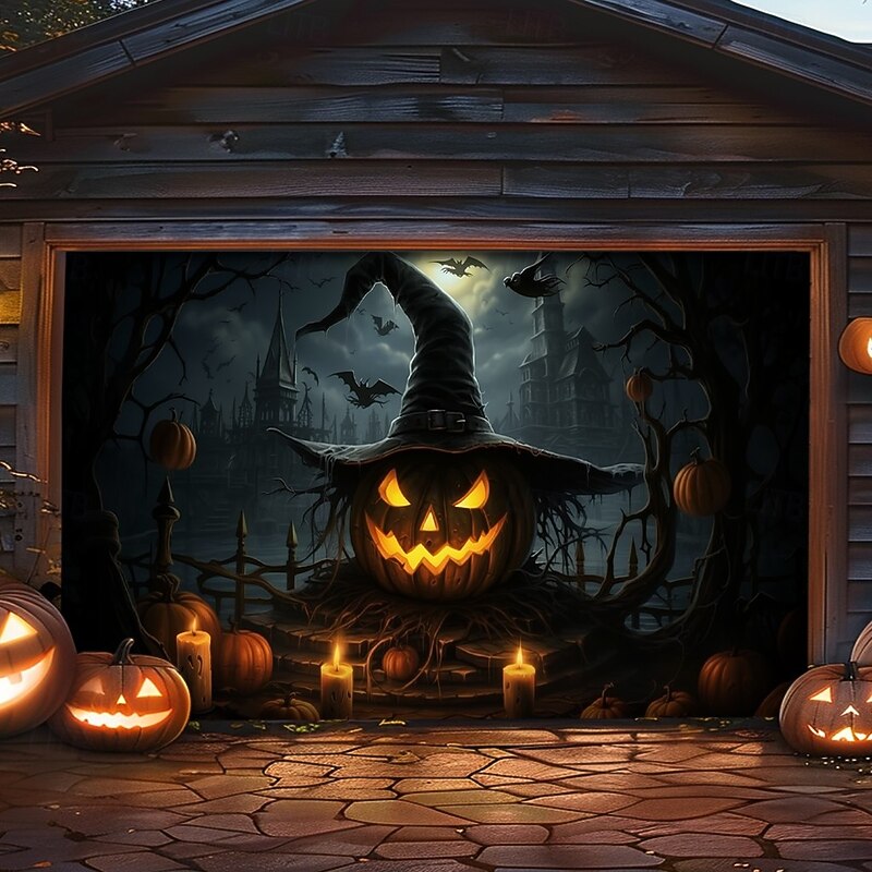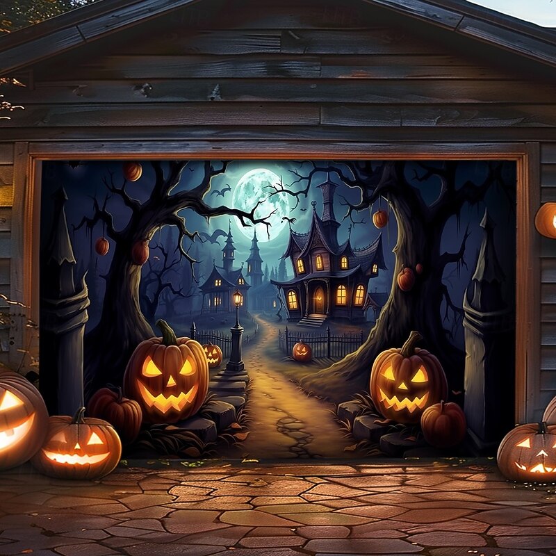 $26.99 - Halloween Garage Door Cover Banner Backdrop – Witch with Jack-o'-Lanterns Under Moon, Easy Hang with Included Hardware, Outdoor Decoration for 2025 Halloween Home Front Yard 2025. Shop for cheap Halloween Garage Door Cover online? Buy at lightinthebox.com on sale today!