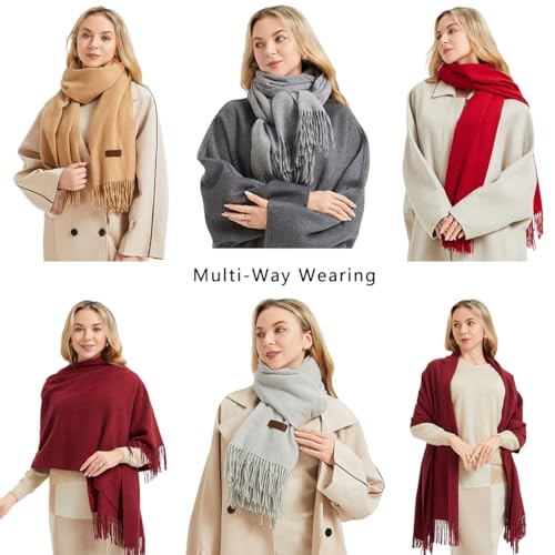 • 【Cashmere Feel】This solid women's large scarf has Super soft and cozy fabric, feels like cashmere, lightweight and sheen. Especially perfect for fall and cold winter weather. Large size allows for different styling options.