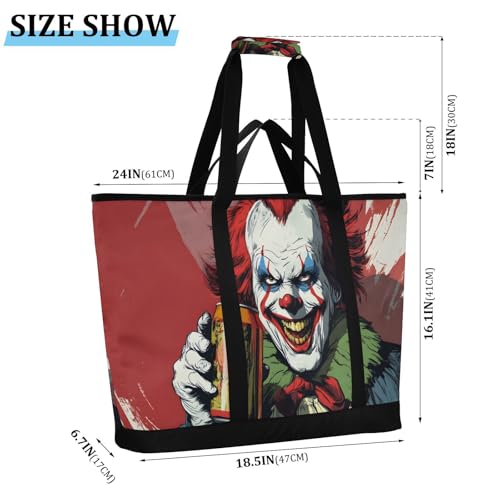 HOT ! Clown Scary Soda Large Insulated Tote Bag for Grocery Shopping Reusable Tote Bags for Women Men, Cooler Bag with Zippered Top & Handles for Beach Picnic Travel