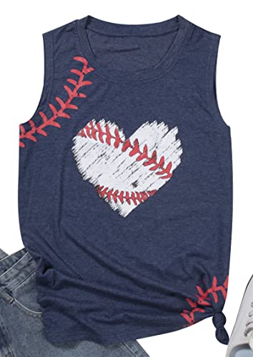 Baseball Tank Tops Women Baseball Heart Print Shirt Funny Play Ball Tank Casual Sleeveless Vest Summer Graphic Tee Top