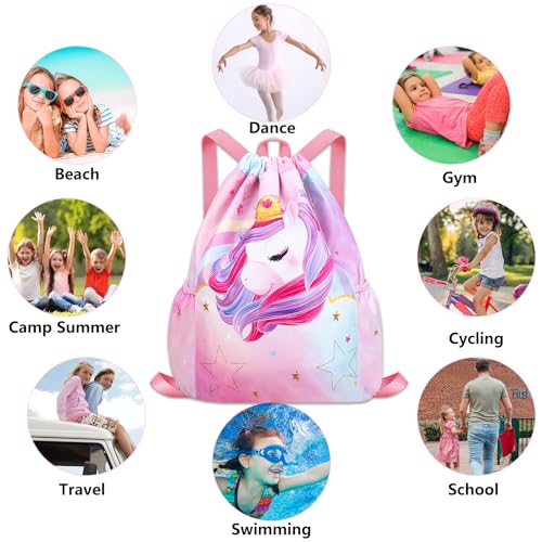 Drawstring Backpack for Kids - Girls Dance Bag,Sport Gym Beach Swim Travel Daypack 5