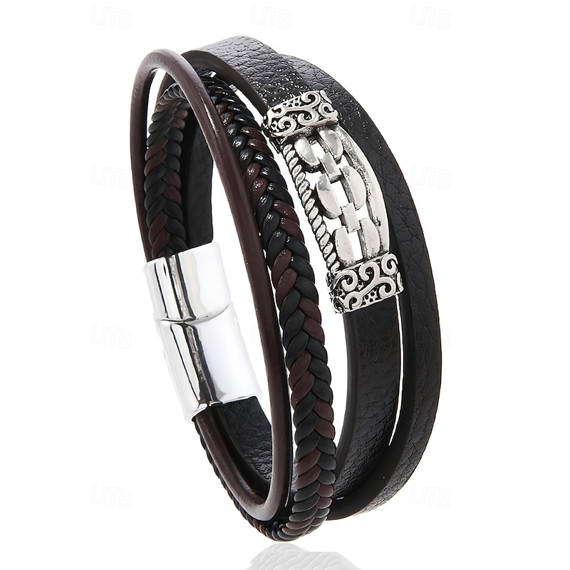 $9.99 - Men's Viking Style Faux Leather Multilayer Bracelet – Braided Design with Stainless Steel Charm, Adjustable Nordic Wristband for Casual and Formal Occasions 2025. Shop for cheap Men's Jewelry online? Buy at lightinthebox.com on sale today!