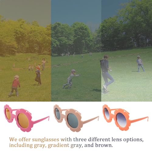 • Various Styles of Glasses: These adorable outdoor beach sunglasses come in 12 different colors, each of them attractive. The flower frames are paired with grey and brown lenses, allowing children to choose from various styles of baby flower sunglasses based on their outfits or the occasion. This variety perfectly caters to the diverse preferences of children.