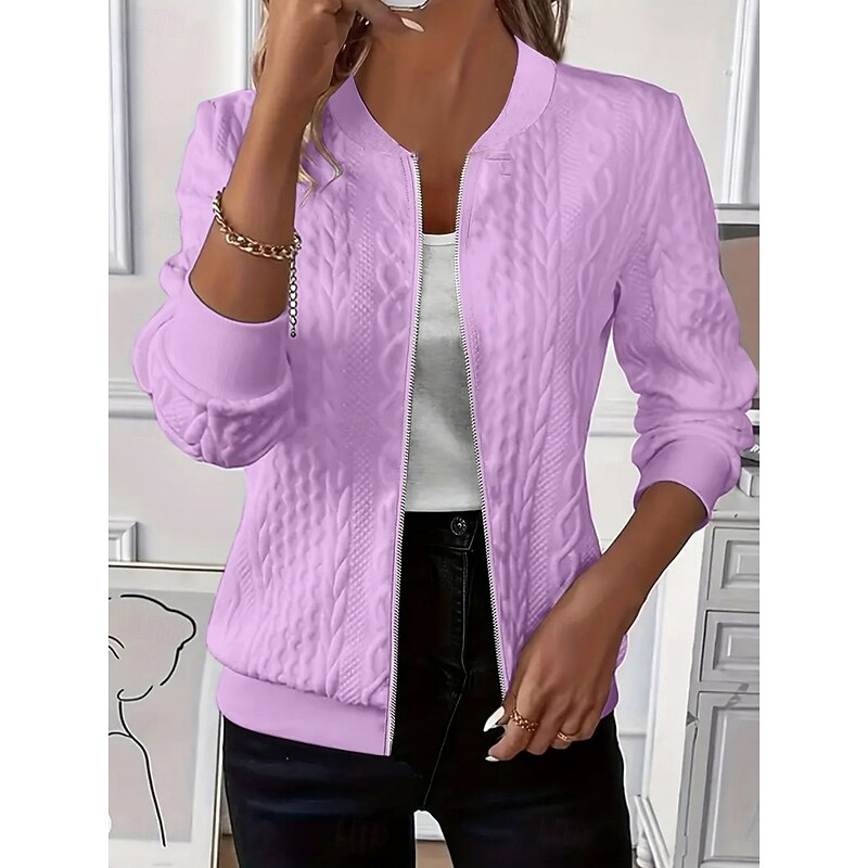 More information about Women's Casual Jacket Comfortable Breathable Zipper Casual Plain Vacation Street Casual Daily Wear Zipper Regular Stand Collar Regular Fit Long Sleeve Outerwear White Pink Blue Spring Fall