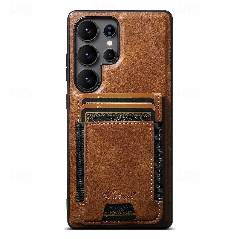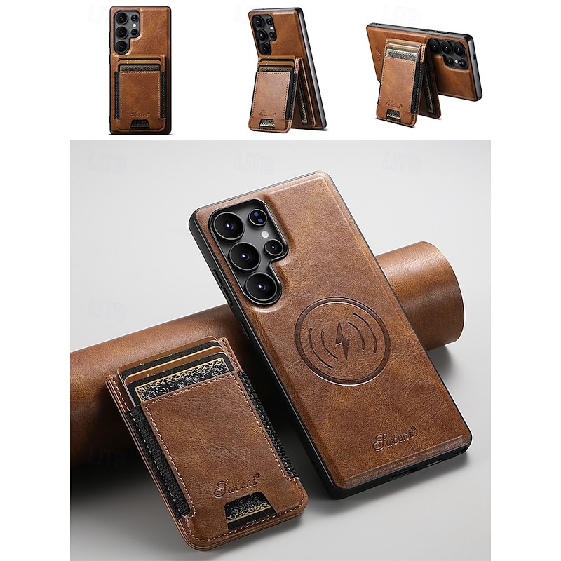 More information about Phone Case For Samsung Galaxy S25 S24 S23 Ultra Plus S22 Plus Ultra Back Cover Magnetic Support Wireless Charging Kickstand Retro TPU PU Leather