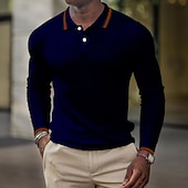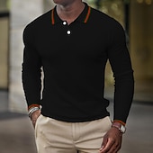 More information about Men's Waffle Polo Shirt Golf Shirt Casual Holiday Lapel Classic Long Sleeve Fashion Basic Plain Button Summer Regular Fit Fire Red Black White Dark Navy Grey Waffle Polo Shirt