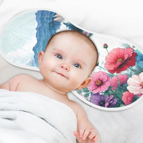 Muslin Burp Cloth for Baby 1PC Floral Lakes & Mountains Landscape Super Absorbent Burping Cloths, Bibs for Newborn Boys Girls 1