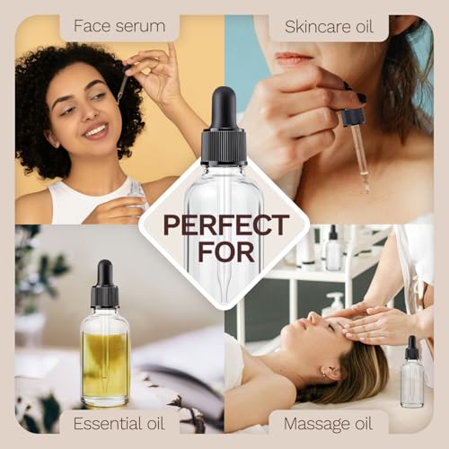 • 【Multi-Use for Health & Beauty】Great as tincture bottles with dropper, hair oil dispensers, or for DIY cosmetics, massage oils, and aromatherapy. Clear glass allows easy visibility of contents.