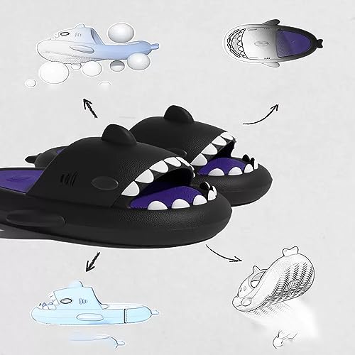 • Unique Design:Cute cartoon shark sliders with shark pattern and a tooth design on the toe cap,make the whole summer more interesting.The shark tooth design at the opening of the slippers is flexible and vivid,designed with a concave sole design protects your toes from kicking against table legs or door sills.