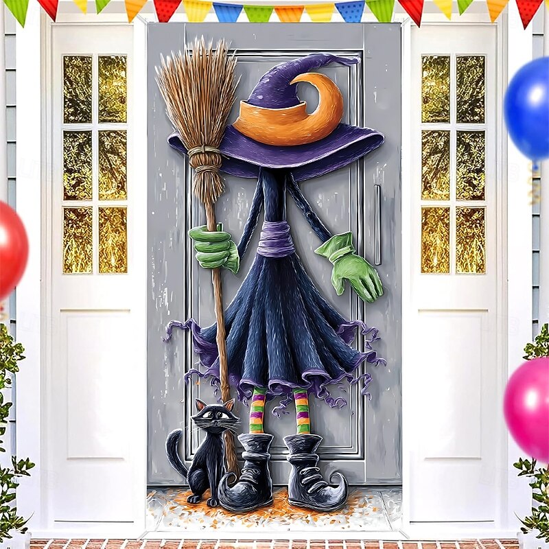 $16.99 - Halloween Door Cover Outdoor Banners Witch Cat Psychedelic Dark Punk Gothic Style Party Outdoor Shooting Backgrounds Front Door Wall Porch Home Decor 2025. Shop for cheap Halloween Door Covers online? Buy at lightinthebox.com on sale today!