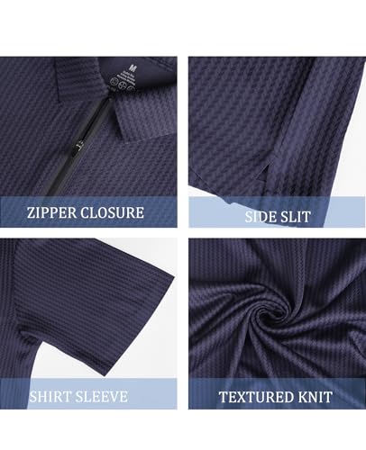 • Feature: Mens polo shirts with 1/4 zipper closure that adds a unique touch to the classic polo shirt style, textured knit, striped fabric, turndown collar, short sleeve and side slit at the hem give a stylish and modern look—wear tucked in or untucked without compromising style or comfort, making these ideal polo tshirts for men.