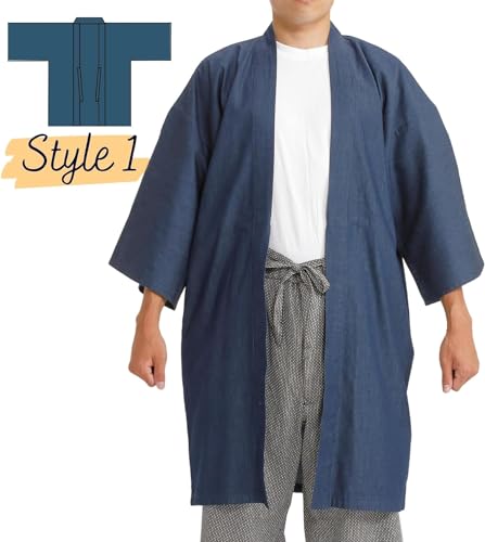 More information about Edoten yukata kimono happi yarn-dyed denim fabric 4.5oz thin haori 3WAY cotton 100% men’s ladies' solid color navy
