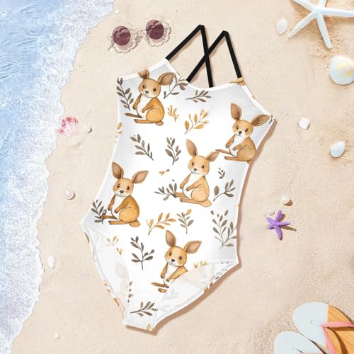 Cute Kangaroos Leaves Girls Swimsuit One Piece Bathing Suit for Baby Girls' Swimwear 3-10T 1