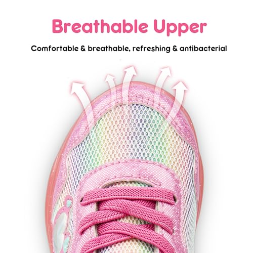 • Non-Slip Sole: Toddler girl light up sneakers use wear-resistant outsole, offers grip, impact cushioning, and anti-slip performance, ensure the safety of kids. The insole isn't removeable. The soles of light up sneakers for girls are also translucent but have glitter mixed in.