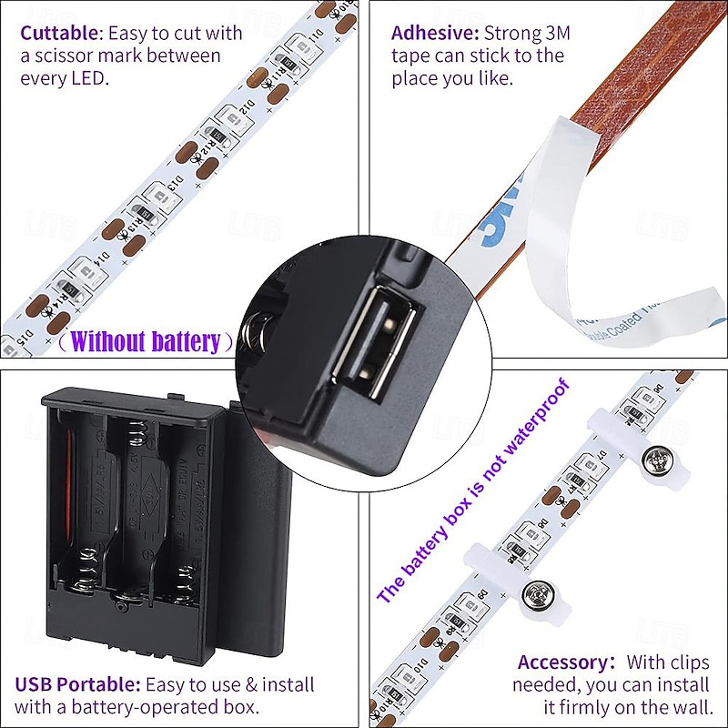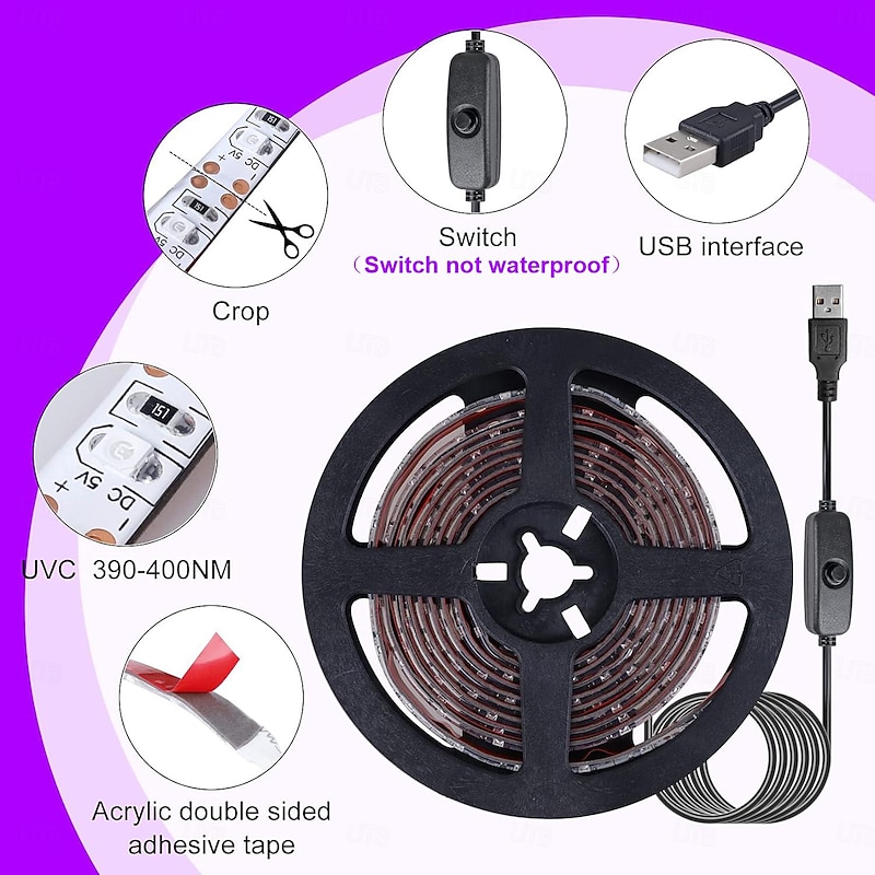 $8.49 - Waterproof LED UV Black Strip Light Purple LED Light Strip USB Interface with Switch or Battery Box SMD2835 380-400NM UV LED No-waterproof Black Light Lamp Suitable for Fluorescent Dance and UV Body Coating 2025. Shop for cheap USB Strip Lights online? Buy at lightinthebox.com on sale today!