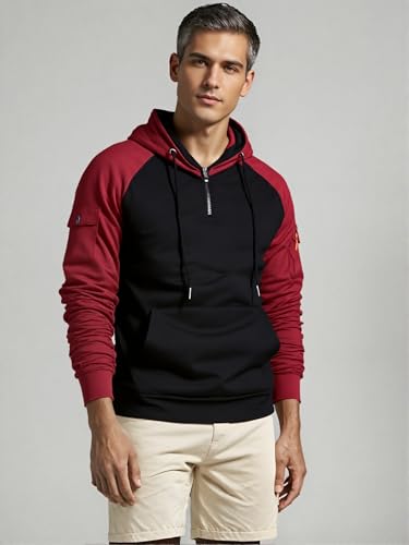 • 【Quarter Zip Pullover & Tactical Design】 Blend Style with Practicality This men’s hoodie features a convenient quarter zip pullover design—easy to put on/take off, and the adjustable zip lets you customize your neckline for cozy full-zip warmth or casual half-zip airflow, perfect for indoor-outdoor transitions.