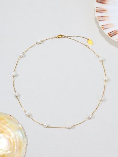 Dainty Pearl Necklace for Women, 18K Gold Plated Choker Necklace 5