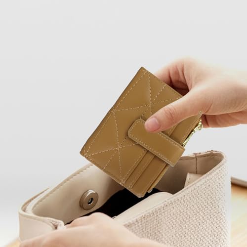 Small Woman Wallets, Bifold PU Leather Card Holder Wallet Fashion Rhombic Multi-Slot Credit Card Holder with Zipper Snap Coin Pocket for Traveling Shopping (Brown) 5