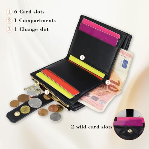 • Functional Design: The women card holder wallet has 6 card slots, 2 external card slots, and 1 check slot, 1 change bag.It can store ID cards, credit cards, business cards, checks,and store the change needed when going out