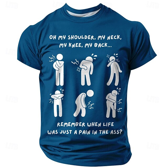 Men's Funny Graphic T-Shirt - Aging Humor & Body Aches 'Pain in the Ass' Quote Short Sleeve 9