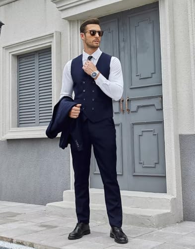 • 【Elegant Suit FEATURES】--ens Regular Fit Double Breasted Suits ,Customizable and adjustable.ONE BUTTON jacket; DOUBLE BREASTED Vest; V-Neck; Adjustable waist pants.