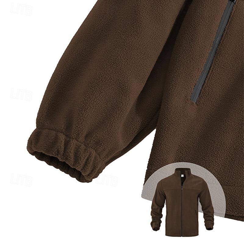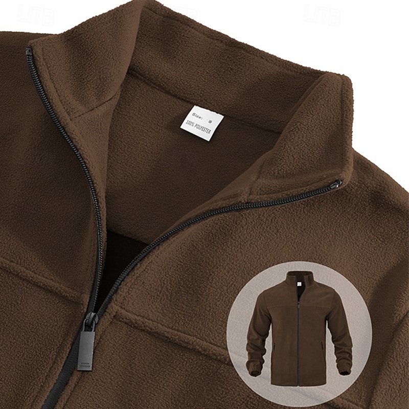 More information about Men's Winter Jacket Fleece Jacket Casual Jacket Vacation Daily Thermal Warm Pocket Fleece Fall Winter Plain Fashion Streetwear Stand Collar Regular Black Ivory Purple Orange Coffee Jacket