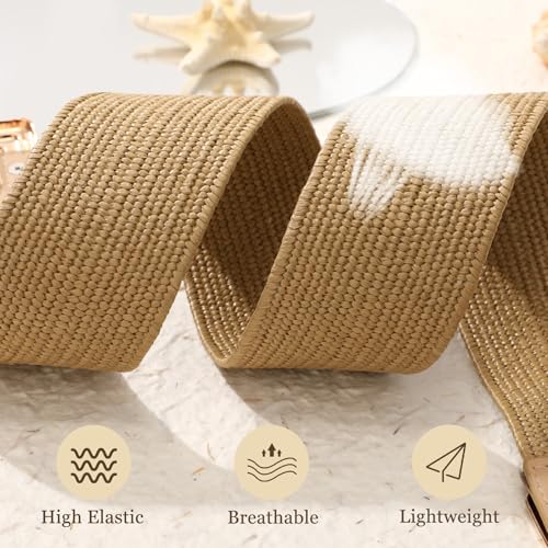 XZQTIVE Straw Woven Elastic Belts for Women, Wide Stretch Boho Belt for Summer Dress with Vintag/Round Buckle Raffia Belt, Khaki Fit Wasit Size 27"-31" 6