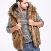 More information about Men's Vest Faux Fur Gilet Daily Wear Vacation Going out Fashion Basic Winter Spring & Fall Hooded Faux Fur Comfortable Plain Single Breasted Hooded Regular Fit Brown Vest