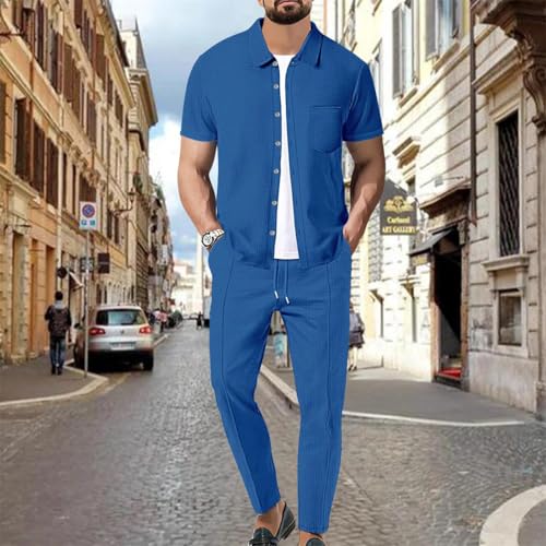 • Matching: Men's Summer Beach Matching Set: Simple and classic shirt and pants match, suitable for a variety of matching. Pair this set with a baseball cap, headphones and sneakers for a street style. Or pair this casual button-down shirt with sandals and shorts for a beach outfit.