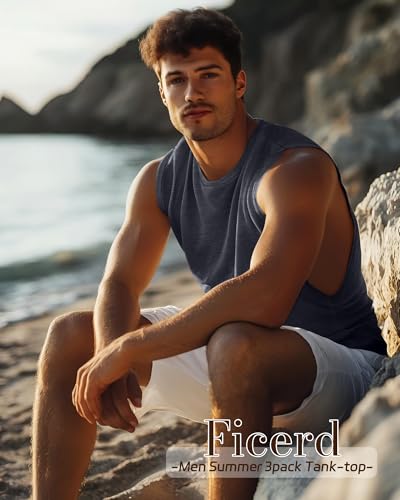 HOT ! Ficerd 3 Pcs Big and Tall Men's Workout Tank Top Cotton Sleeveless Muscle Tee Gym Athletic Bodybuilding Cut Off Shirt