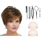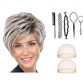 $31.99 - Edgy Short Pixie Wig with An Asymmetrical Fringe and Rich Feathery Layers/Multi-tonal Shades of Blonde Silver Brown and Red With 2PCS HD Wig Cap and Hairdressing Tool Set 2025. Shop for cheap Older Wigs online? Buy at lightinthebox.com on sale today!