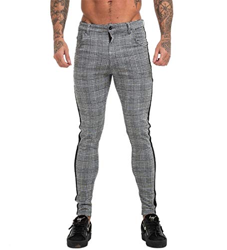 Men's Gray Plaid Slim Fit Stretch Flat-Front Skinny Dress Pants 7