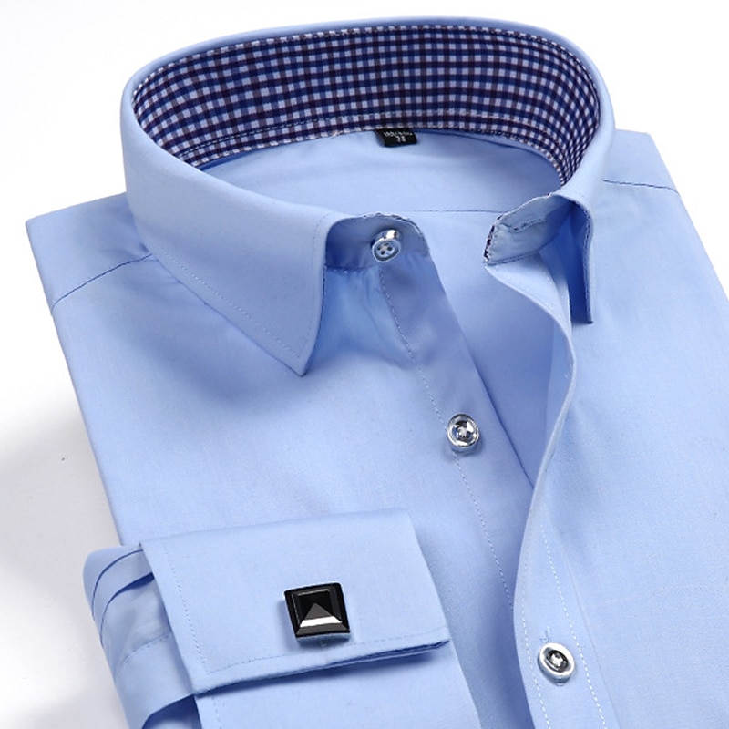 More information about Men's Shirt Dress Shirt Plain Office & Career Wedding Party Black White Yellow Sky Blue Long Sleeve Lapel Spring & Fall Clothing Apparel