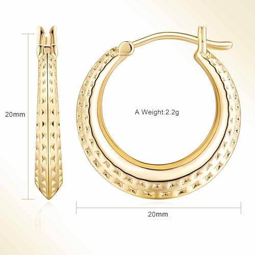 • 【Exquisite Size】These small hoop earrings for women, with 20mm width and 2.2g weight, are the exquisite size for everyday wear. 14k gold earrings for women can easily be paired with any outfit to add a touch of sophistication.
