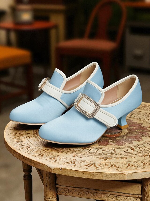 Women's 1920s Vintage Victorian Buckle Heels - Edwardian Satin Kitten Heel Dress Shoes for Lolita, Rococo and  Gatsby Party or Cosplay Outfits 21