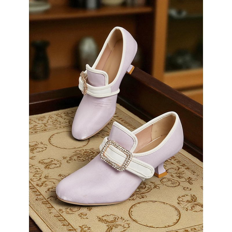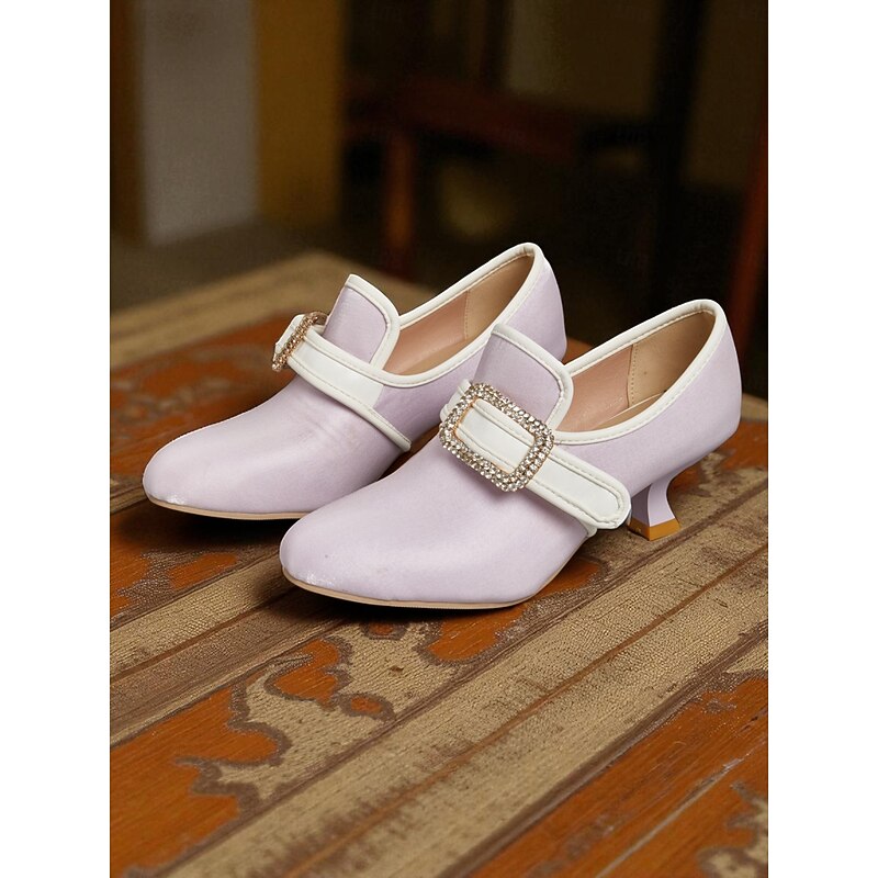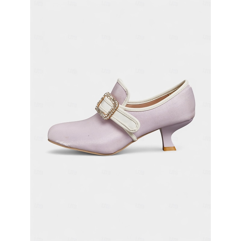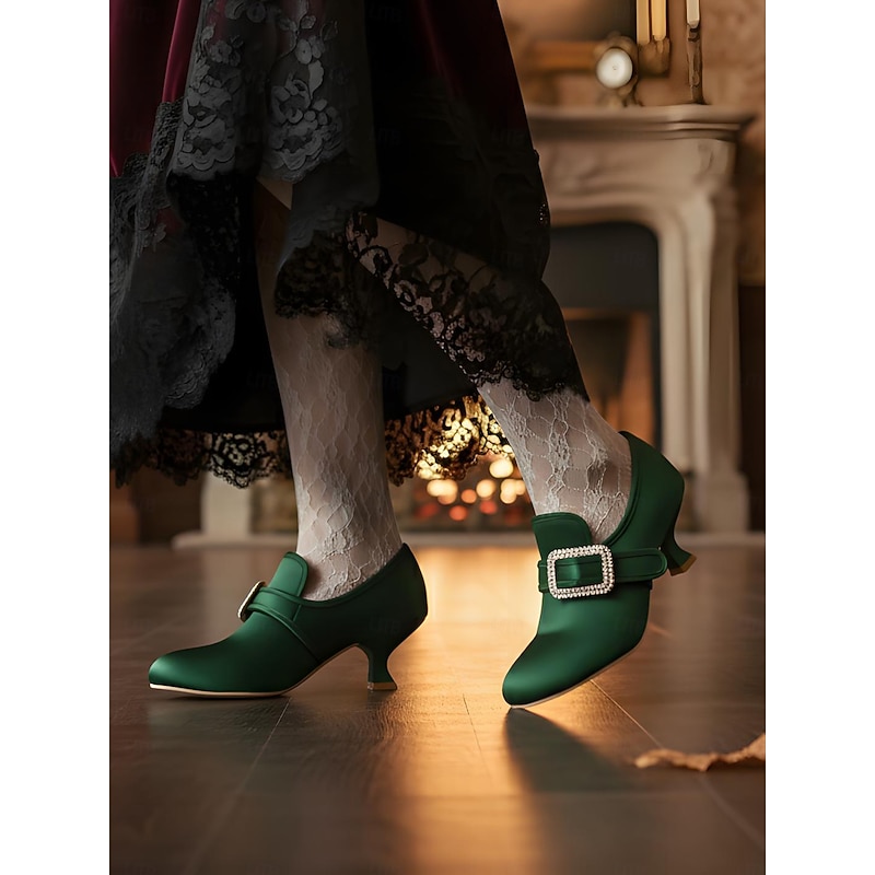 Women's 1920s Vintage Victorian Buckle Heels - Edwardian Satin Kitten Heel Dress Shoes for Lolita, Rococo and  Gatsby Party or Cosplay Outfits 19