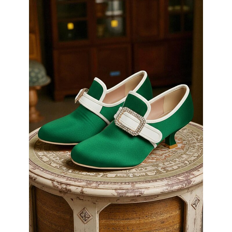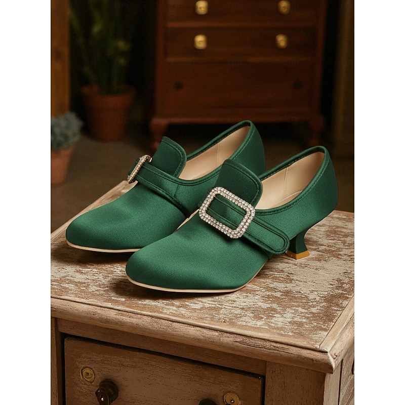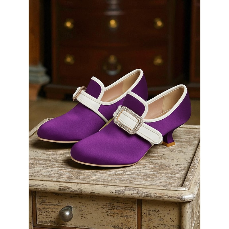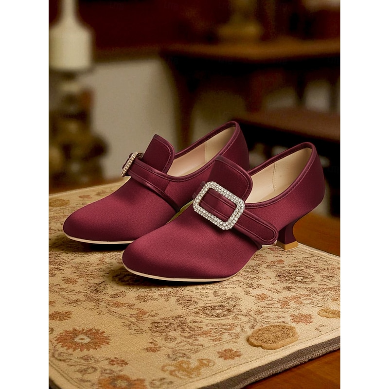 Women's 1920s Vintage Victorian Buckle Heels - Edwardian Satin Kitten Heel Dress Shoes for Lolita, Rococo and  Gatsby Party or Cosplay Outfits 32