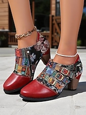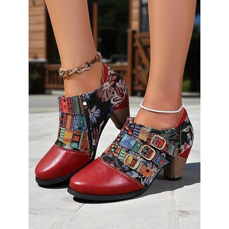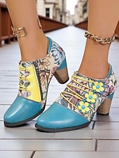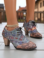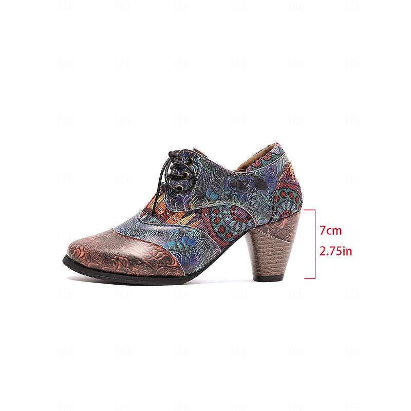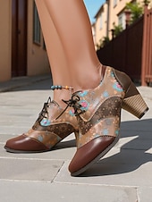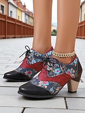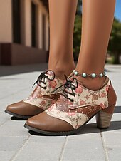 More information about Women's Vintage Floral Lace-Up Oxford Shoes – Multi-Color Faux Leather and Fabric Patchwork Chunky Heel Oxfords with Round Toe, Retro Victorian Style for Casual Wear, Parties, and Fall Winter Outfits