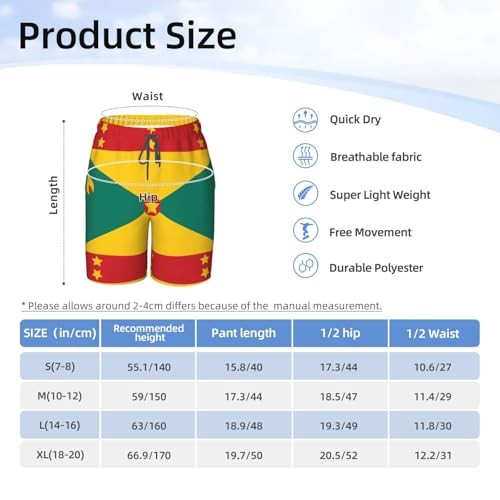 HOT ! Flag of Grenada Youth Beach Pants, Soft and Breathable, with Drawstring Waist, Suitable for Sports and Leisure.