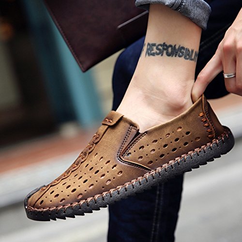 • Men's sandals use high-quality Leather, matching with elastic fabric materials, which is breathable and skin-friendly.
