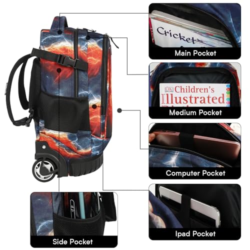 Tilami Rolling Backpack 19 inch Wheeled Cute LAPTOP Boys Girls Travel School Student Trip (Football) 6