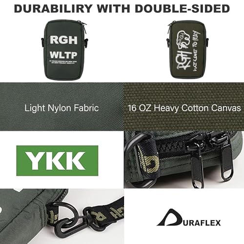 HOT ! Rough Enough Small Crossbody Shoulder Bag Over Cell Phone Purse for Men Women Preppy Teens Glow in Dark Logo Travel Dog Walking Army Green