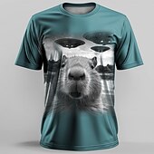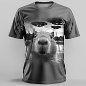 Highlights [Fabric] : Crafted from high-quality polyester, this men's t-shirt is designed to offer durability and superior moisture-wicking properties, ensuring comfort during both casual and active wear, especially suitable for the spring and summer seasons. [Fit] : The t-shirt features a regular fit that allows for ease of movement while maintaining a contemporary and eye-catching aesthetic, making it a versatile choice for everyday use. [Design Highlights] : The t-shirt stands out with its unique 3D print, showcasing a whimsical black and white graphic of a surreal scene featuring a squirrel and UFOs. The classic crew neck and short sleeves add to its casual retro vintage and street style appeal. [Occasions] : Ideal for a variety of occasions, this t-shirt is perfect for sports, outdoor activities, holidays, and casual outings. It's a great choice for style enthusiasts who appreciate bold and original art. [Size Range] : Available in a range of sizes including S, M, L, XL, 2XL, and 3XL, ensuring a comfortable fit for adults across various size preferences.
